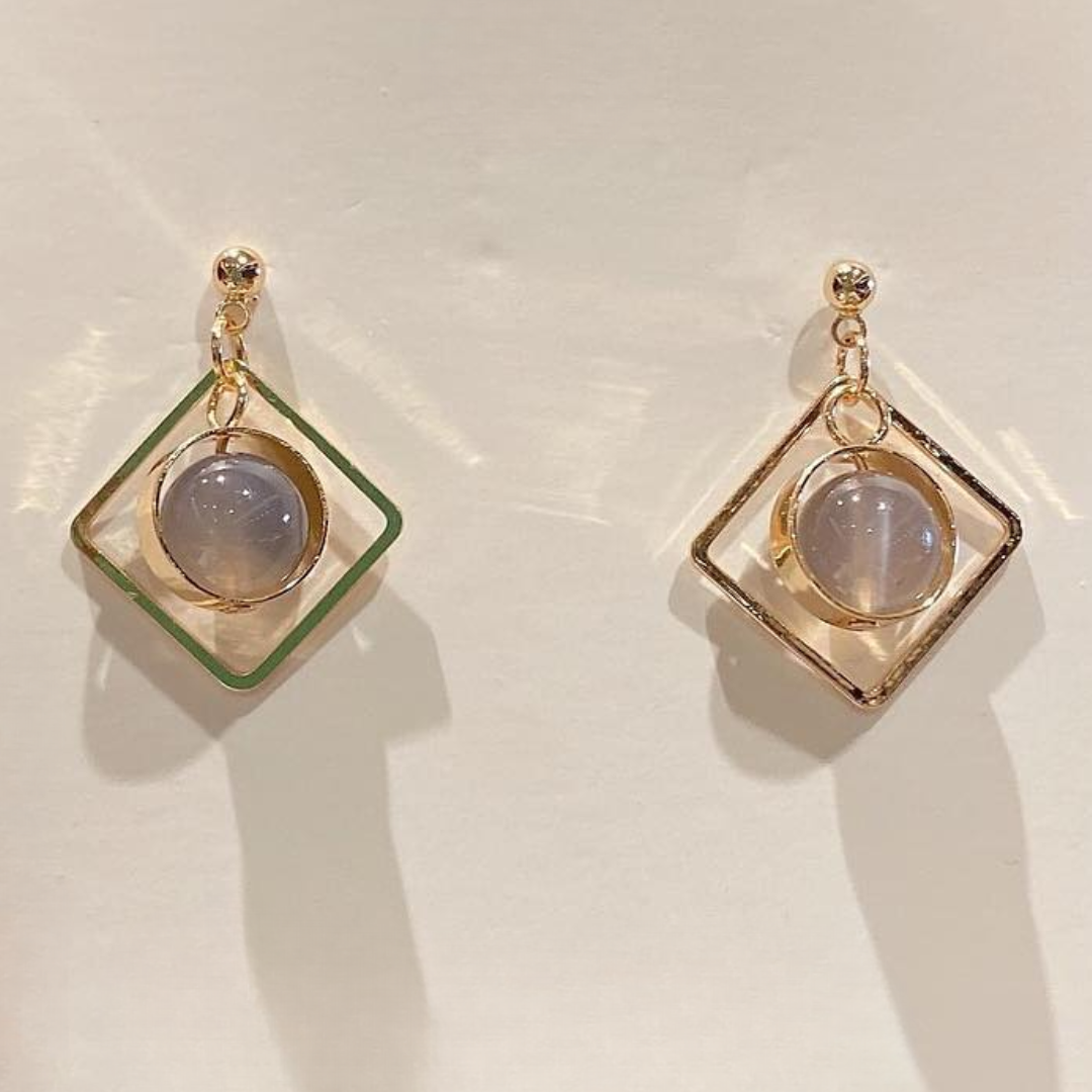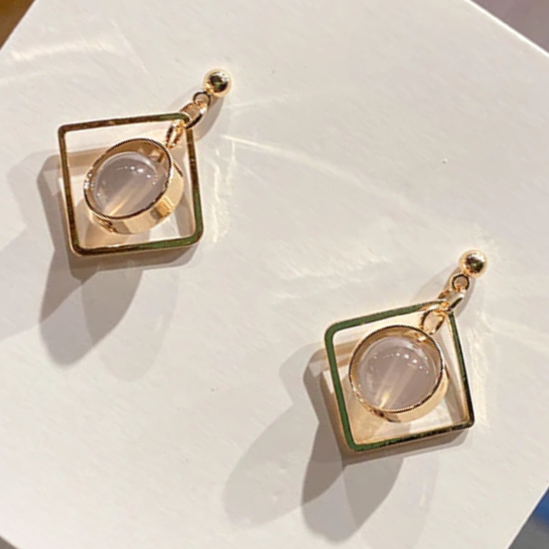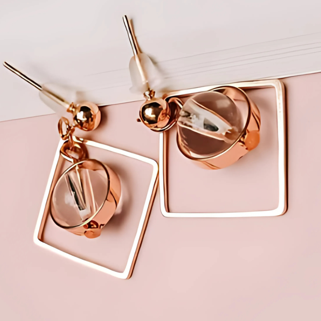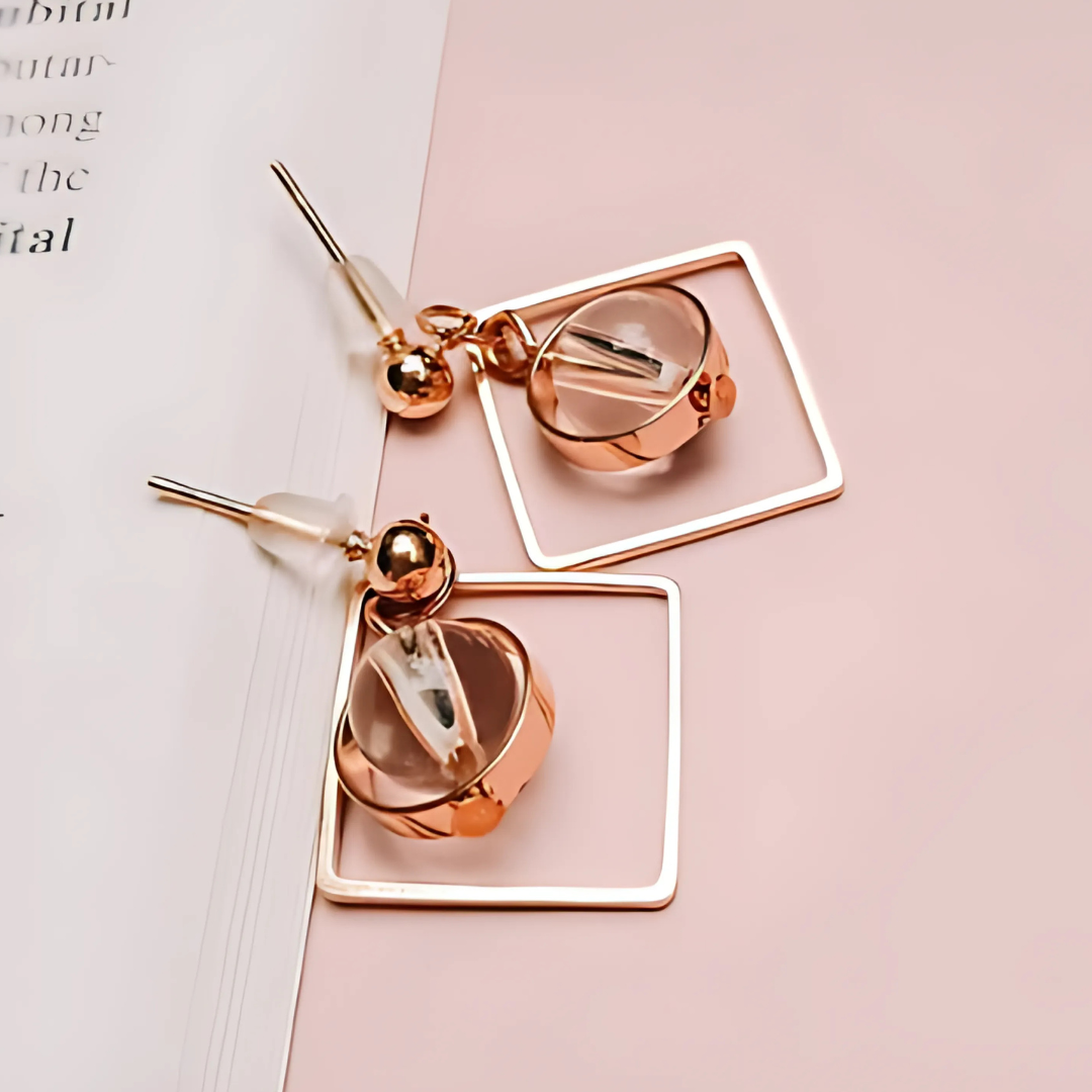 Diese schicken geometrischen Ohrringe zeichnen sich durch ein modernes Design mit quadratischem Rahmen und einem glatten, durchscheinenden Stein in der Mitte aus, das Minimalismus mit Eleganz verbindet. Die goldfarbene Oberfläche verleiht ihnen einen raffinierten Touch und macht sie perfekt, um sowohl Alltags- als auch Abendlooks aufzuwerten.